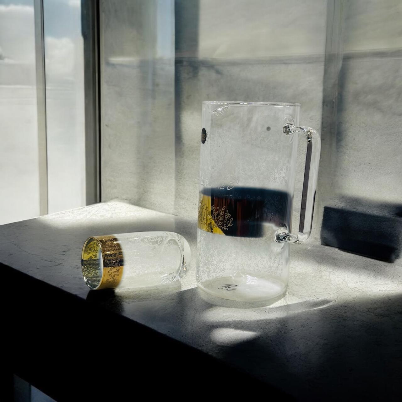 Includes 1 jug with 6 glasses