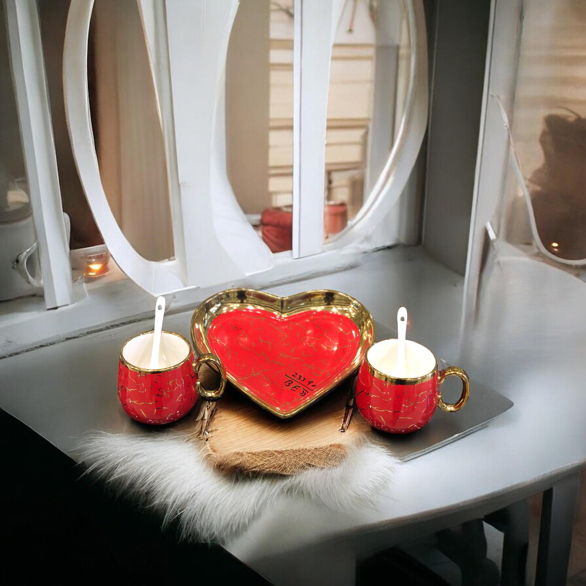 This exquisite heart-shaped crockery set exudes luxury and warmth, making it a perfect addition to any home or gift collection. The set includes: