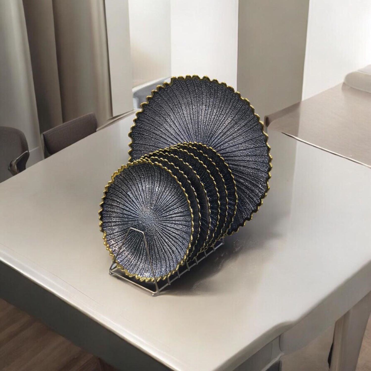 - Neat Metal Stand for Display ? Keeps plates organized and beautifully showcased.